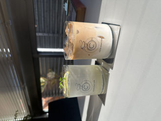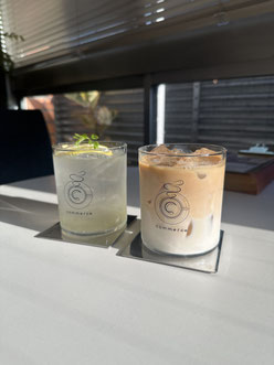 ・シンプルで洗練されたロゴが施されたグラスは都会的でモダンなカフェのイメージを表現します。