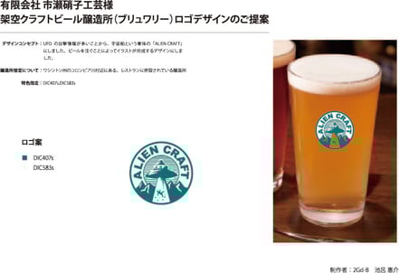 デザインコンセプト:UFOの目撃情報が多いことから、宇宙船という意味の「ALIEN CRAFT」にしました。ビールを注ぐことによってイラストが完成するデザインにしました。